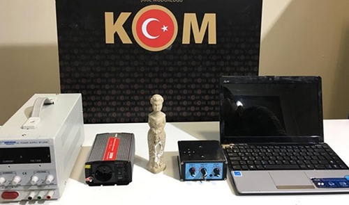 İl Emniyet Müdürlüğü Kaçakçılık ve Organize Suçlarla Mücadele Şubesi ekipleri, 2863 sayılı Kültür ve Tabiat Varlıklarını Koruma Kanunu'na Muhalefet suçunu önlemeye yönelik çalışma kapsamda, Tokat'tan kente geldiği öğrenilen bir otomobili Kırıkkale-Ankara kara yolundaki uygulama noktasında durdurdu. Araçtaki Y.D, M.D, F.P, A.Y. ve R.K'nin yapılan Genel Bilgi Tarama (GBT) sorgusunda herhangi bir aranmalarının olmadığı tespit edildi. Araçta yapılan aramada ise motor kısmında beze sarılmış halde, tarihi eser olduğu değerlendirilen kadın ve çocuk figürlü heykel ile diz üstü bilgisayar, voltmetre dedektör başlığı ve inverter ele geçirildi. Araçta bulunan heykelin kendisine ait olduğunu beyan eden ve gözaltına alınan M.D. hakkında Kültür ve Tabiat Varlıklarını Koruma Kanunu'na Muhalefet suçundan adli işlem başlatıldı.