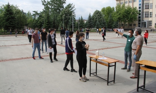 Maske kuralına uyan öğrenciler sınav merkezine giriş sırasında ellerini dezenfekte etti. Yaklaşık 70 metrelik oluşan kuyrukta tek sıra halinde içeri alınan öğrencilerin kısmen sosyal mesafe kuralına uyduğu görüldü. Yüzlerce öğrencinin sınava girdiği sınav merkezi girişinde sadece 13 kişilik sosyal mesafe çizgisinin konulduğu görülürken, öğrencilerin de kısmen bu kurala uyduğu görüldü. Saat 10.15'te başlayan sınava adaylar 10.00'dan sonra alınmadı. Sınav evrakı dağıtan görevliler de lateks eldiven kullanırken, adaylar, sınav salonlarına geçip sıralarına oturduktan sonra sınav süresince maskelerini çıkarabildi. Adaylara, 120 soru için 135 dakika süre verilecek sınavın sonuçları, 7 Temmuz'da açıklanacak.