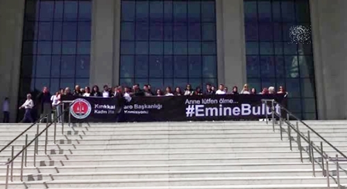 Kırıkkale'de Emine Bulut'un eski eşi tarafından 10 yaşındaki kızının yanında öldürülmesi, Kırıkkale Barosu tarafından protesto edildi. Kırıkkale Adliyesi önünde toplanan grup adına konuşan Kırıkkale Barosu Kadın Hakları Komisyonu Başkanı Tuğçe Günel, Emine Bulut'un 2006 yılında evlenip boşandığını, 2013 yılına kadar aralıksız şiddet gördüğünü söyledi. Boşanmalarına rağmen 2014 yılında katil kocanın tehdit ve hakaretlerine devam etmesi üzerine Emine Bulut'un suç duyurusunda bulunduğunu anlatan Günel, şöyle konuştu: