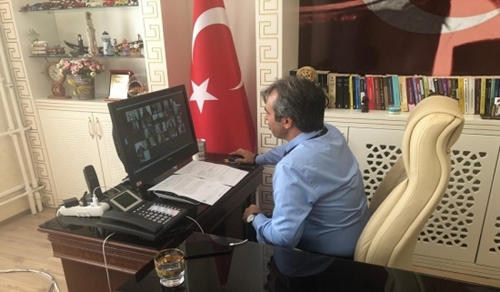 Milli Eğitim Müdürü Yusuf Tüfekçi okul müdürleri ile e-toplantı yaptı.