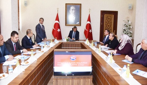 İlimizin eğitimdeki başarı oranını daha ileri seviyelere çıkarabilmek için çalışmaların çok yönlü olarak arttırılması gerektiğine dikkat çeken Vali Sezer "Her okulumuz yürütülen projelerin bir parçası olmakla birlikte; kendisinin de ayrıca akademik, sportif ve sosyal alanda okul karnesi, programları olacak. Akademik başarının yanı sıra, her çocuğumuzun bir spor dalı ile uğraşmasını, isteyen her çocuğumuzun bir enstrüman öğrenmesini istiyoruz. " dedi. Daha sonra, Ortaokul Müdürleri tek tek söz hakkı alarak okullarının genel durumu hakkında bilgi sundular. Valilik Makam Toplantı Salonu’nda gerçekleşen toplantıya, İl Milli Eğitim Müdürü Yusuf Tüfekçi, Şube Müdürleri ve Ortaokul Müdürleri katıldı.