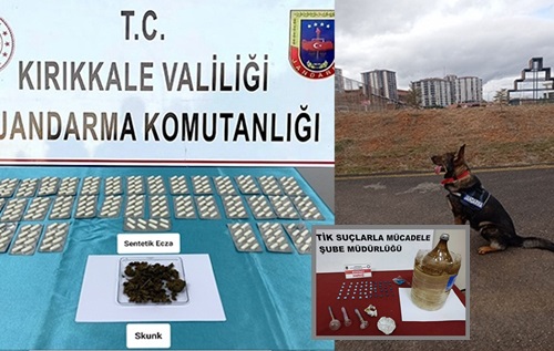 Kırıkkale'de jandarma ekiplerince yolcu otobüsteki bir çantada uyuşturucu madde ele geçirildi. Valilikten yapılan açıklamaya göre, E.T. (24) ve E.T'nin (27) Ankara'dan Kırıkkale'ye uyuşturucu madde getirileceği ihbarını değerlendiren Kırıkkale İl Jandarma Komutanlığı ekipleri, şüphelilerin bulunduğu otobüsü Kırıkkale-Ankara kara yolundaki kontrol noktasında durdurdu. Narkotik köpeği "Tepe"nin de katıldığı aramada, şüphelilerin yanında bulunan çanta içerisinde 15 gram skunk ve 278 ecza maddesi bulundu. Jandarmadaki işlemlerinin ardından adliyeye sevk edilen 2 şüpheli, savcılıktan serbest bırakıldı.