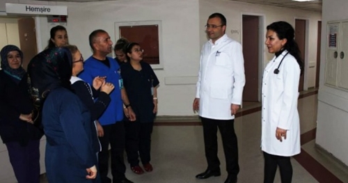 Yüksek İhtisas Hastanesi Başhekimi Uzman Dr. Erkan Tolga Demirel ve Hastane Göğüs Hastalıkları Uzmanı Dr. Selma Demir, 20 Kasım 2019 Dünya KOAH Günü dolayısıyla Göğüs Hastalıkları Servisine ziyarette bulundular.