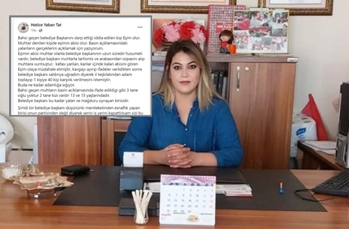 İşte o açıklama: “Bahsi geçen belediye BaÅŸkanını darp ettiÄŸi iddia edilen kiÅŸi EÅŸim olur. Muhtar denilen kiÅŸide eÅŸimin abisi olur. Basın açıklamasındaki yalanların gerçeklerini açıklamak için yazıyorum. EÅŸimin abisi muhtar olanla belediye baÅŸkanının uzun süredir husumeti vardır, belediye baÅŸkanı muhtarla tartışmış ve arabasından sopasını alıp muhtara vurmuÅŸtur. Kafası yarılan, kanlar içinde kalan abisini gören EÅŸim olaya müdahale etmiÅŸtir. Kavgayı ayırıp ifadeler verildikten sonra belediye baÅŸkanı saldırıya uÄŸradım diyerek il teÅŸkilatından adam toplayıp 1 kiÅŸiye 40 kiÅŸi karşılık verilmesini istemiÅŸtir. Buda ne kadar adamlığa sığıyor.