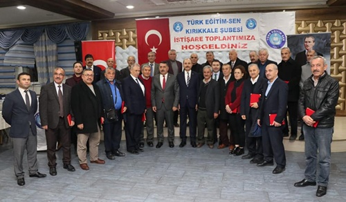 Türk EÄŸitim-Sen Genel BaÅŸkanı Talip Geylan, ve Genel BaÅŸkan Yardımcısı Mehmet YaÅŸar ÅžahindoÄŸan Kırıkkale Åžubesinin düzenlediÄŸi ve ÖÄŸretmen Evi’nde gerçekleÅŸtirilen istiÅŸare toplantısına katıldı. Saygı duruÅŸu ve İstiklal Marşı’nın okunmasının ardından baÅŸlayan programın açılış konuÅŸmasını yapan ÅŸube baÅŸkanı Yücel Karabacak, Türk EÄŸitim-Sen’in vizyon ve misyonları doÄŸrultusunda üyelerinin haklarını korunması anlamında önemli çalışmalar gerçekleÅŸtirdiklerini ifade etti.