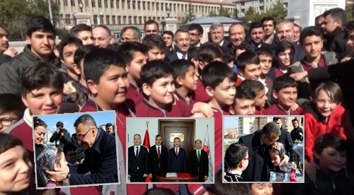 Cumhurbaşkanı Yardımcısı Fuat Oktay, Kırıkkale ziyaretinde cuma namazı öncesi cami avlusunda çocukların isteğini kırmayarak onlarla hatıra fotoğrafı çektirdi.