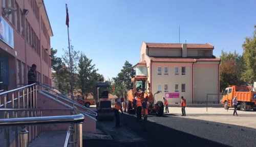 Okul bahçeleri asfaltlanıyor. Vali Yunus Sezer incelemede bulundu.