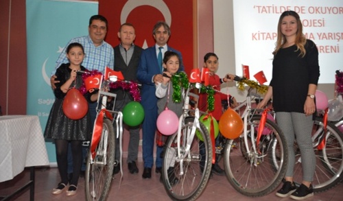 Törene Milli EÄŸitim Müdürümüz Yusuf Tüfekçi’nin yanı sıra İl SaÄŸlık Müdürü Doç. Dr. UÄŸur Tiftikçi, Halk SaÄŸlığı Hizmetleri BaÅŸkanı Dr. Hakan Kılıç, yöneticiler, öÄŸretmenler, veliler ve öÄŸrenciler katıldı. Törende bir konuÅŸma yapan Tüfekçi, “Okumanın pek çok faydası vardır. Okumak, sizi rahatlatır, anlama kabiliyetinizi artırır, zekanızı geliÅŸtirir, ifade yeteneÄŸinizi geliÅŸtirir,çeÅŸitli bilgiler kazanırsınız, hafızanız güçlenir, analitik düÅŸünce yetenekleriniz geliÅŸir, daha iyi yazarsınız, kiÅŸisel iliÅŸkilerinizde pozitif etkileri olur, yaratıcı zekanız geliÅŸir. Tüm bu kazanımlar sayesinde öncelikle ülkemizi, sonrasında ise dünyamızı geliÅŸtirerek insanlara faydalı olursunuz.” dedi. Dereceye giren öÄŸrencileri, ailelerini, okul yöneticilerini ve öÄŸretmenlerini tebrik etti. İlkokul, ortaokul ve lise düzeyinde düzenlenen yarışmada dereceye giren öÄŸrencilere bisiklet hediye edilmesinin ardından tören sona erdi.