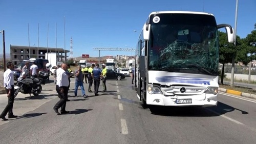 Kırıkkale'de yolcu otobüsünün TIR’ın dorsesine arkadan çarpması sonucu meydana gelen trafik kazasında 6 kiÅŸi yaralandı. Kaza, saat 14.30 sıralarında Kırıkkale-KırÅŸehir karayolunun 5. kilometresinde meydana geldi. Edinilen bilgiye göre, Ankara'dan KırÅŸehir istikametine yolcu taşıyan Åžükrü Barış (41) idaresindeki 06 LE 830 plakalı otobüs, aynı yönde seyreden Zekeriyye Morkan'ın kullandığı 06 GE 3340 plakalı TIR’ın dorsesine arkadan çarptı.