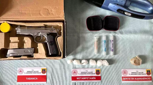 Kırıkkale'nin Yahşihan ilçesinde jandarma ekiplerince durdurulan bir otobüste yapılan aramada uyuşturucu madde ve havalı tabanca ele geçirilirken, şüpheli şahıs gözaltına alındı. Kırıkkale İl Jandarma Komutanlığı ekipleri, kaçakçılıkla mücadele kapsamında Yahşihan ilçesi Irmak köyünde bir otobüsü durdurarak denetim gerçekleştirdi. Yapılan kontrollerde, şüpheli hareketler sergileyen B.B. (39) isimli şahsın kaba üst aramasında 21.8 gram Sentetik Kannabinoid, 24.8 gram Metamfetamin ve havalı tabanca ele geçirildi. Cumhuriyet Savcılığı'nın talimatıyla şahıs gözaltına alınırken, olayla ilgili adli işlemlerin sürdüğü öğrenildi.