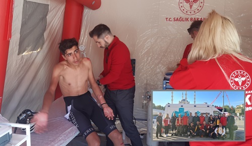 Müdürlükten yapılan açıklamada “Valiliğimiz himayelerinde Türkiye Bisiklet Federasyonu tarafından “Pedallar Anadolu’nun Kalbinde, Kırıkkale’de mottosu ile düzenlenen Türkiye Bisiklet Şampiyonası 7. Etap Puanlı Yol Yarışları için Müdürlüğümüze bağlı ekiplerimiz 3 gün boyunca sahada aktif bulunarak tedavi gerektiren sporcu ve hastalara ilk müdahaleyi yaparak gerekli tedavilerini gerçekleştirdiler. Müdürlüğümüz Sağlık Hizmetleri Başkanlığına bağlı İl Ambulans Servisi Başhekimliğince yarışmalarda gerekli sağlık tedbirlerinin alınması amacıyla 22-25 Eylül tarihleri arasında 3 adet Ambulans, 1 adet Motosiklet Ambulans, 1 adet UMKE ani müdahale aracı ve ünitesi ile birlikte 17 personelimizi görevlendirildi. Şampiyona boyunca yaralanan sporcuların tıbbi müdahale ve tedavileri ekiplerimiz tarafından sahada yapılarak, ileri tetkik ve tedavi gerektiren sporcu ve hastalar ise alanda bekleyen ambulanslar ile hastaneye sevk edildi” ifadelerini kullandı.