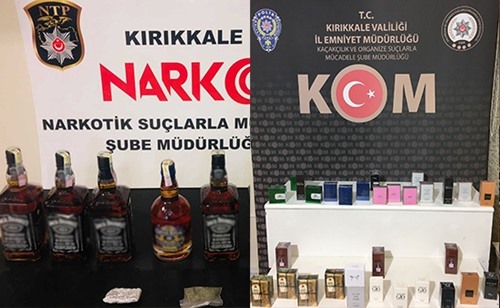 İl Emniyet MüdürlüÄŸü Narkotik Suçlarla Mücadele Åžubesi ekipleri, Cumhuriyet BaÅŸsavcılığı koordinesinde, kent genelinde uyuÅŸturucu kullanımı ve satışıyla mücadele çalışmaları kapsamında H.G'nin aracında arama yaptı. Ekipler, aramada 10,54 gram esrar maddesi ve TAPDK bandrolü bulunmayan 7 litre alkollü içecek ele geçirdi. Gözaltına alınan zanlı hakkında adli iÅŸlem baÅŸlatıldı. Kaçakçılık ve Organize Suçlarla Mücadele Åžubesi ekipleri de Åž.K'nin (27) İstanbul'dan Kırıkkale'ye kaçak parfüm getirdiÄŸi ihbarı üzerine çalışma baÅŸlattı. Zanlıyı kent merkezindeki bir otelde yakalayan ekipler, yanında bulunan poÅŸet içerisinde kaçak olduÄŸu deÄŸerlendirilen 30 ÅŸiÅŸe parfüm ve bir kulaklık ele geçirdi. Åžüpheli hakkında adli iÅŸlem baÅŸlatıldı.