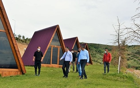 Kırıkkale Valisi Yunus Sezer, Balışeyh Kaymakam Vekili İbrahim Gökçe ile birlikte, Dinek Dağı Atlı Safari ve Doğa Parkı ile Gençlik Kampı inşaat alanında incelemelerde bulundu.