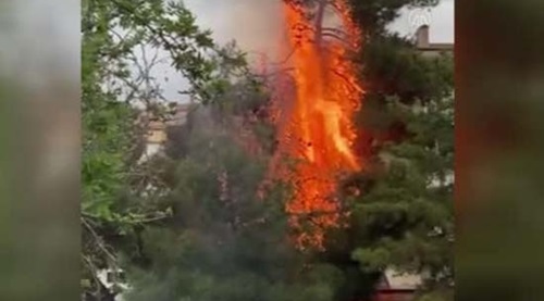 Çalılıöz Mahallesi'ndeki Atatürk Parkı'nda bir ağaçta yangın çıktı.