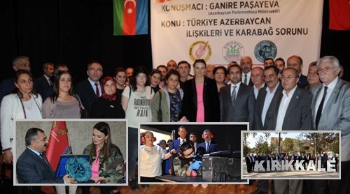 Kırıkkale Medya ve Gazeteciler Cemiyeti BaÅŸkanlığı tarafından organize edilen, "Bir Millet İki Devlet, Türkiye-Azerbaycan ve KarabaÄŸ Sorunu" adlı konferans için Kırıkkale'ye gelen Azerbaycan Milletvekili Ganire PaÅŸayeva, Kırıkkale Valisi Mehmet İlker Hantankaçmaz, Belediye BaÅŸkanı Mehmet Saygılı, Türk Ocakları Kırıkkale Åžube BaÅŸkanı Dr. Halil Murat Ünver, Medya ve Gazeteciler Cemiyeti BaÅŸkanı Ercihan Çakmak ile bir araya geldi.