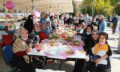 Kırıkkale'de ev kadınlarının aile ekonomilerine katkı sağlamaları amacıyla kurulan Hanımeli Pazarında bayanlar pazarın 1. Yaşını Belediye Başkanı Mehmet Saygılı ile kahvaltı yaparak kutladılar.