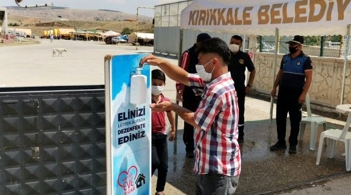 Kırıkkale Belediye tarafından kurban satış ve kesim yerlerinde pandemi tedbirleri sıkı bir şekilde uygulanıyor. Kırıkkale Belediye Başkanı Mehmet Saygılı'nın talimatıyla kurban satış ve kesim yerinde korona virüs önlemleri sıkılaştırıldı. Kurban satış alanında çadırlar arasında mesafe bırakılırken Kırıkkale Belediyesi Zabıta Müdürlüğü ekiplerince de alana girişte ateş ölçümü yapılıyor. Yine alanın belirli noktalarına belediye tarafından el dezenfektanları ve maske kutuları yerleştirildi. Hayvan pazarına kurbanlık getiren araçlar ise girişte kurulu bulunan dezenfekte tünelinden geçirilerek ilaçlama işlemi yapılıyor.