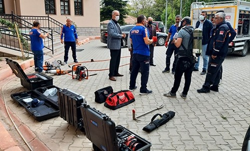 Belediye bahçesindeki eÄŸitimde, kapalı devre solunum sistemi, yüksek basınçla çalışan kesici, ayırıcı ve parçalayıcı ekipmanlar, enkaz altı görüntüleme cihazı, sismik dinleme cihazı, makinaların girmediÄŸi alanlarda kullanılan holigan seti ve kurtarmalarda kullanılan emniyet kemerinin tanıtımı ve kullanım alanları anlatıldı. Arama kurtarma teknisyeni Adnan BaÅŸer yangın, sel, deprem gibi doÄŸal afetlerde ve trafik kazaları ile kurtarma faaliyetlerinde nasıl davranılması gerektiÄŸini ve makinaların nasıl kullanılacağını uygulamaları gösterdi. Herkesin ilk yardım eÄŸitimini alması gerektiÄŸini ifade eden BaÅŸer, kazalarda ilk yardımın çok önemli olduÄŸunu ve uzmanlık gerektiren müdahalelerde eÄŸitim alan kiÅŸilerin yardımcı olabileceÄŸini söyledi.