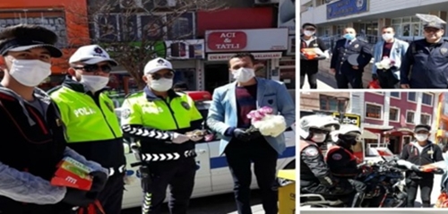Kırıkkale Çiçekçiler Derneği ve Komagene Çiğ Köfte işbirliği ile polise moral desteği verildi.
