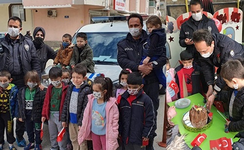 Kentte faaliyet gösteren Meliha Kartal Kreş ve Anaokulu, Türk Polis Teşkilatının 176'ncı kuruluş yıl dönümünü bir etkinlikle kutlamak istedi. Kavga olduğu ihbarı üzerine okula polis ekibi sevk edildi. Düzenlenen etkinlikten haberi olmayan polisler, okula girmeleriyle kendilerini ellerinde Türk bayraklarıyla bekleyen öğrencilerin sürpriziyle karşılaştı. Öğrencilerle birlikte kendileri için hazırlanan pastanın mumunu üfleyen polisler, kutlama için öğretmen ve öğrencilere teşekkür etti.
