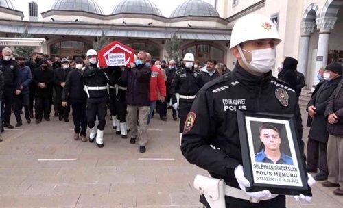 Cenaze törenine, Dinçarslan'ın ailesi ve yakınları, İl Emniyet Müdürü Fahri Bulut, AK Parti İl Başkanı Mustafa Kaplan, emniyet mensupları ile vatandaşlar katıldı. Dinçarslan'ın bekar olduğu ve mesleğe 7 ay önce başladığı öğrenildi. Çeşme İlçe Emniyet Müdürlüğünde görevli polis memuru Süleyman Dinçarslan, 9 Mart'ta ikametinde bulunduğu sırada beylik tabancasının kazayla ateş alması sonucu başından yaralanmış, tedavi gördüğü Ege Üniversitesi Hastanesinde önceki gün hayatını kaybetmişti.
