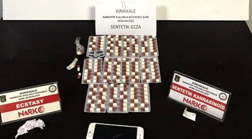 Kırıkkale'de satışı yeÅŸil reçeteyle gerçekleÅŸtirilen ilaçları kente sokmaya çalışan 4 kiÅŸi gözaltına alındı. İl Emniyet MüdürlüÄŸü Narkotik Suçlarla Mücadele Åžubesi ekipleri, 'satışı yeÅŸil reçeteye tabi yüklü miktarda hapın Ankara'dan Kırıkkale'ye getirileceÄŸi bilgisini aldı. İhbar üzerine harekete geçen ekipler, yapılan çalışma neticesinde S.İ., Y.İ., Z.D. ve B.C.B. isimli ÅŸahısları gözaltına aldı. Åžahısların ikamet ve araçlarında yapılan aramalarda 155 adet yeÅŸil reçeteye tabi hap, 4 adet ekstasy hap, 0.63 gram sentetik kannobinoid madde ele geçirildi. Operasyon kapsamında 4 ÅŸahıs hakkında "UyuÅŸturucu veya Uyarıcı Madde İmal ve Ticareti Yapmak" suçundan adli iÅŸlem yapıldı.