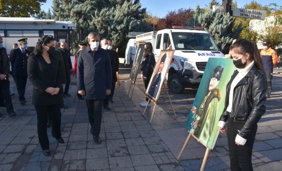 Kırıkkale Valisi Yunus Sezer, Belediye BaÅŸkanı Mehmet Saygılı ve protokol ile birlikte, Güzel Sanatlar Lisesi öÄŸrencileri tarafından hazırlanan ve Cumhuriyet ve Demokrasi Meydanında sergilenen "Atatürk Konulu Karakalem Resim Sergisi"ni gezdi. Sergide Atatürk resimleri yer aldı.