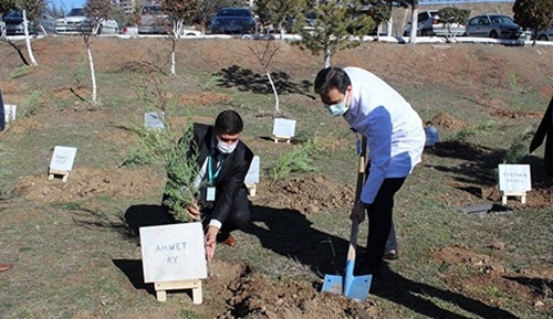 Kırıkkale Yüksek İhtisas Hastanesi'nin sağlık çalışanları, 14 Mart Tıp Bayramı kapsamında ölen meslektaşları için fidan dikti.