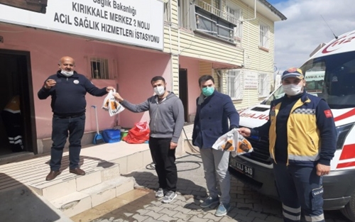 Virüs illetinin kendini göstermeye baÅŸladığı günden buyana yaÅŸlılara ve ihtiyaç sahiplerine yardım için sahadan ayrılmayan Yeniden Refah Partisi Kırıkkale İl BaÅŸkanı Mustafa Ayten yönetim kurulu üyeleri bu defa da gece gündüz hastane ve saÄŸlık ocaklarında görevleri başında bulunan saÄŸlıkçıları ziyaret ederek onlara gıda yardımında bulundular.