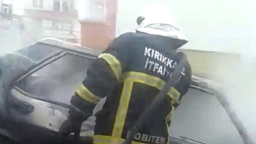 Kırıkkale'de bir apartman önüne park edilen sahipsiz otomobil alev alev yanarak küle döndü. Yangın, Karşıyaka Mahallesi'nde bir apartmanın önünde meydana geldi. Edinilen bilgiye göre, çekme belgeli bir hurda otomobilde henüz bilinmeyen bir nedenden dolayı yangın çıktı. Alevler gören mahalleli hemen itfaiye ye haber verdi. Kısa sürede olay yerine gelen Kırıkkale Belediyesi itfaiye ekipleri tarafında yanan otomobil söndürüldü. Soğutma işlemlerinin ardından polis ekipleri araç ile ilgili soruşturma başlattı.