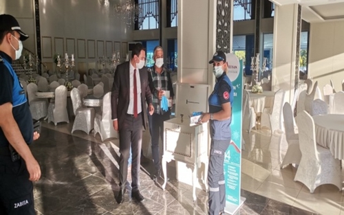 DüÄŸün salonlarında ayrıca hijyen, maske ve sosyal mesafe kurallarına uyulması, düÄŸün salonlarına alınacak misafirlerin ateÅŸinin ölçülmesi, masalara kolonya ve dezenfektan konulması hatırlatıldı. Gelin ve damat bekleme odalarının pencereli olması, iki düÄŸün arasında mutlaka bir saat bırakılması, düÄŸün salonlarının havalandırılması ve masalar arası en az 1,5 metre, aynı masadaki sandalyeler arası da 60 santimetre olacak ÅŸekilde düzenleme yapılmasını istendi." Açıklamada, genel itibariyle kentteki düÄŸün salonu iÅŸletmecilerinin kurallara uydukları ve gerekli hazırlıkları tamamladıklarının görüldüÄŸü kaydedildi.
