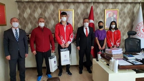 Peru Halter Federasyonu tarafından düzenlenen Online Yıldızlar Halter Şampiyonasında başarı gösteren sporcular Kırıkkale Gençlik ve Spor İl Müdürü Aziz Sinan Alp'i ziyaret etti.Peru Halter Federasyonu tarafından düzenlenen IWF Online Yıldızlar Dünya Kupası müsabakaları, 402 sporcunun ve 62 ülkenin katılımıyla 11-18 Kasım 2020 tarihleri arasında gerçekleştirildi. Covid-19 salgını nedeniyle online olarak gerçekleştirilen kupada Türkiye'yi temsil eden Hakan Şükrü Kurnaz dünya ikincisi, Sümeyye Ergişi dünya beşincisi, Nurgül Yüksel ise dünya yedincisi oldu. Kırıkkale'nin adını dünyaya duyuran sporcular, Gençlik ve Spor Müdürü Alp'i ziyaret etti.