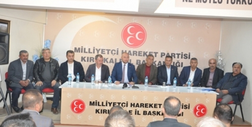 MHP Kırıkkale İl Başkanı Erdal Baloğlu, partisinin ilçe başkanlarıyla bir araya geldi. Baloğlu, İl Başkanlığında düzenlenen toplantıda, gazetecilere yaptığı açıklamada, MHP Genel Başkanı Devlet Bahçeli'nin talimatları ile mahalli idareler seçimlerine tek başına katılmaya karar verdiklerini söyledi. Her ne kadar resmi bir ittifak söz konusu olmasa da MHP'nin bu süreçlerdeki duruşunun takdir edildiğini ve vatandaşların seçimlerde ittifak olmasa bile MHP'ye vereceği destekle bunu ispat edeceğini dile getiren Baloğlu, şöyle konuştu: