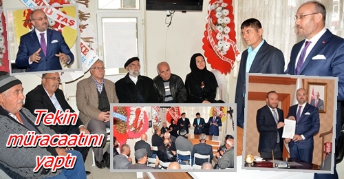 Tekin, ilçe başkanlığındaki müracaat toplantısının ardından beraberindekilerle birlikte AK Parti İl Başkanlığı’na geçti. Burada da İl Başkanı Nuh Dağdelen ile görüşen Tekin, hayırlı bir iş için yola çıktıklarını belirtti. Tekin’in müracaat evrağını teslim alarak imzalayan İl Başkanı Nuh Dağdelen, “Sayın Tekin’e hayırlısını diliyoruz. Allah yardımcısı olsun” dedi. Dağdelen’e teşekkür eden Tekin, hep birlikte hayırlı işler için çaba göstereceklerini vurguladı ve teşekkür etti.