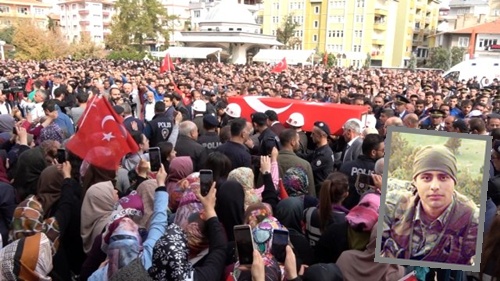 Nur Camii’ndeki törene bürokrasi, askeriye, siyaset ve iş dünyasından bir çok kişi katıldı. Şehidimizin cenazesi buradan alınarak toprağa verildi. Defin törenine de geniş katılım oldu. Cenaze töreninde şehidin ailesi bir hayli üzgündü. Yakınları ve sağlık ekipleri aileye yardımcı olmaya çalıştılar. Şehidimiz göz yaşları arasında toprağa verilirken, teröre de tepki gösterildi.