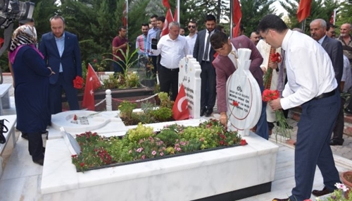Åžehitlikteki gerçekleÅŸen programda Nur Camii İmam-Hatibi Murathan Önder Kur'an- Kerim tilaveti okumasının ardından İl Müftüsü Åžahin Yıldırım ÅŸehitler için dua etti. Daha sonra protokol üyeleri ÅŸehit kabirlerine karanfil bıraktı. Ardından Nur Camii'nde düzenlenen programda Mevlid-i Åžerif okundu. İl Müftüsü Åžahin Yıldırım ise ÅŸehitler için yapılan hatmin duasını yaptı. Programın ardından büyükÅŸehir parkında 15 Temmuz konulu resim sergisi, 15 Temmuz anı defterinin imzalanması ve 15 Temmuz tiyatro gösterisiyle programlar devam etti.