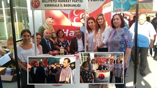 MHP Kırıkkale Teşkilatı Ramazan Bayramı’nı adı gibi şeker tadında kutladı. Teşkilat tarafından caddeye stand kuruldu ve yoldan geçenlere şeker ikram edildi. Standda İl Başkanı Erdal Baloğlu ve Milletvekili Adayı Halil Öztürk’te hazır bulundu. Parti tarafından yapılan stand ve şeker ikramı konusunda açıklamada “Bu mübarek arefe gününde Sayın İl Başkanımız Erdal Baloğlu, merkez ilçe Başkanımız Yaşar Erdal ve sayın vekilimiz disiplin kurulu Başkanımız Halil Öztürk vatandaşlara şeker ikramında bulunup bayramlarını kutladılar” denildi.