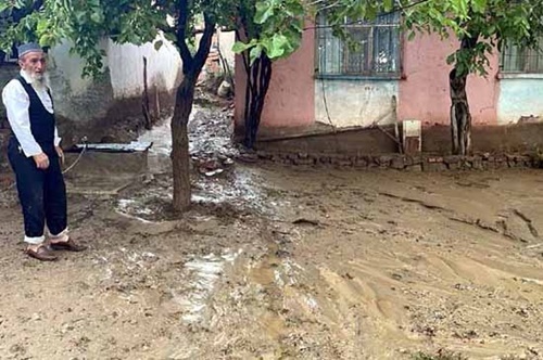Kırıkkale'de sağanağın oluşturduğu sel nedeniyle bazı ev ve bahçeleri su bastı.