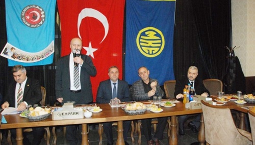 Burada bir konuşma yapan Ulusu şunları söyledi;" Türk metal sendikası 4. olağan kongresi için büyük bir yarışın içerisine girdik.El ele gönül gönüle bunu da pekiştirmek adına bir araya gelelim gündemdeki konuları konuşalım dedik.Arada bir süre anlamsız dedikodular var,bunlarla ilgili geçen hafta Ankara’ya gittik.Herşeyi görüştük bu iş oldu olacak,hiç kimsenin bundan endişesi olmasın,yeter ki biz dimdik duralım. Siz hiç karganın yanında kartal,tilkinin yanında aslan gördünüz mü?yok,biz Allah izin verirse işçi arkadaşlarımızın bütün davalarında, iyi gününde, kötü gününde hastalığında, düğününde ekip olarak ant içtik,yola çıktık biz size dost olmaya, gönüldaş, sırdaş olmaya ant içtik,bizi bu yoldan Allah’tan başka kimse çeviremez, bize desteklerinizi esirgemeyin,biz hep sizin yanınızda olmaya talibiz,kurumun gündemdeki konuları malum. El ele vererek hep birlikte başaracağız.Sizden ricamız bize sahip çıkın,kendi şahsımızla hiç bir şey beklemeden sadece sizinle ilgili ne konunuz varsa gerekirse aslan olup pençelerimizle ister işveren olsun kim olursa olsun elimizden geleni yapıp sizlere sahip çıkacağız” dedi.