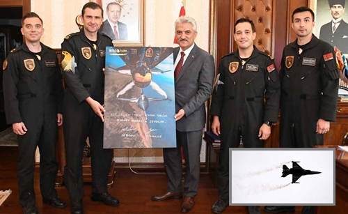Türk Hava Kuvvetleri'nin göz bebeği SOLOTÜRK, Kırıkkale'de düzenlenecek olan tanıtım günleri kapsamında gerçekleştireceği gösteri uçuşu öncesi Kırıkkale Valisi Mehmet Makas'ı makamında ziyaret etti.