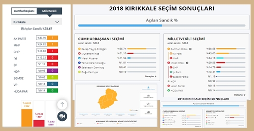 Kırıkkale’de 708 sandıkta oy kullanıldı. Şu ana kadar 641 sandık açıldı. Seçime katılım oranı yüzde 77.44 olarak görülüyor. Toplam seçmen sayısı 198 bin 396. Kullanılan oy ise şu ana kadar 154 bin 609 olarak görülüyor. Cumhurbaşkanlığında Recep Tayyip Erdoğan’a oy desteği yüzde 65.45 Olarak görülürken, Muharrem İnce yüzde 21.29 olarak görülüyor. Meral Akşener 11.61, Temel Karamollaoğlu ise 1.03 görülüyor. Milletvekili dağılımı ise bu sonuçlara göre 1+1+1 olarak görülüyor. Cumhur İttifakının oyu yüzde 68.33, Millet İttifakının oyu 29.68 olarak görülüyor. İlk sonuçlara göre AK Parti bunu yüzde 43.90 oyla alıyor. MHP yüzde 24.02 oyla alıyor. CHP ise yüzde 14.83 oyla almış görünüyor. Rakamlarda fazla bir değişiklik beklenmiyor.