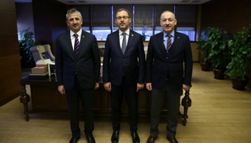 Gençlik ve Spor Bakan Yardımcısı İhsan Selim BaydaÅŸ’ın da yer aldığı ziyarette; Gençlik Merkezi ve Spor Salonu yapılması, Amatör Spor Kulüplerine malzeme ve nakdi yardım yapılması,75.Yıl Ortaokuluna Spor Salonu yapılması, Mobil Gençlik Merkezi ve Gençlik Temas Merkezleri oluÅŸturulması talepleri ile ilk defa ilimizde uygulanacak olan “ Gençlik Hem Camide, Hem Sporda” Projesi kapsamında Diyanet ve Gençlik Spor İl MüdürlüÄŸü iÅŸbirliÄŸi ile camii dernekleri ve cami gençlik koordinatörlüklerince kurulacak spor kulüpleri vasıtasıyla ‘1000 kursiyerden 1000 sporcuya’ hedefleri konularında görüÅŸmeler gerçekleÅŸtirildi. Bakanlık ziyaretinde Gençlik ve Spor İl Müdürü Haluk Karahan’da hazır bulundu.