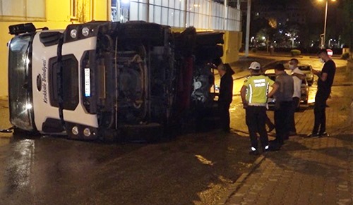 Kırıkkale'de önceki gün kontrolden çıkan yol süpürme aracının devrildiği kazada sürücü yaralandı.