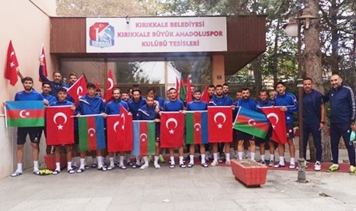 Misli.com 3. Lig 4. Grup ekiplerinden Kırıkkale Büyük Anadoluspor, antrenman öncesi Türk ve Azerbaycan bayraklarıyla Azerbaycan'a destek verdi.Yönetim, teknik ekip ve futbolcular, antrenman öncesi ellerindeki Türk ve Azerbaycan bayraklarıyla basın mensuplarına poz verdi.Kulüp Başkanı Veli Uça, gazetecilere yaptığı açıklamada, işgalci Ermenistan'ı protesto ettiklerini ve her zaman Azerbaycan'ın yanında olduklarını söyledi. Her platformda Azerbaycanlı kardeşlerine manevi anlamda destek olmak istediklerini aktaran Uça, "Bugünkü antrenmanımıza futbolcularımız da Türk ve Azerbaycan bayraklarıyla çıkarak, yüreklerimizin Azerbaycanlı kardeşlerimizle birlikte olduğumuzu ortaya koydular. Ben inanıyorum ki Azerbaycanlı kardeşlerimiz Ermenistan'a gerekli dersi vereceklerdir. Kardeşlerimiz Türkün gücünü bir kez daha tüm dünyaya göstereceklerdir." diye konuştu.