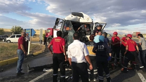 Kırıkkale'de, seyir halinde ilerleyen 2 akaryakıt tankerinin çarpışması sonucu çekicinin içinde sıkışan sürücü yaralandı. Kaza, Kırıkkale-Çorum D-200 Karayolu'nun 53. Kilometresindeki Türkiye Åžoförler Federasyonu KavÅŸağı'nda meydana geldi. Edinilen bilgiye göre, seyir halinde ilerleyen Rafet Çiftçi'nin (44) kullandığı 71 BC 8369 plakalı akaryakıt tankeri ile Abdullah Deniz idaresindeki 47 LB 045 plakalı çekicinin römorkuna arkadan çarpması sonucu sürücü Rafet Çiftçi (44) çekici kabinin içinde sıkışarak yaralandı. Olay yerine 112 Acil Servis, Kırıkkale Belediyesi İtfaiye ve polis ekipleri sevk edildi. Çarpışmanın etkisiyle hurdaya dönen çekicinin sürücüsü Çiftçi, itfaiye ekiplerince sıkıştığı yerden çıkartıldı. Daha sonra ambulansla hastaneye kaldırılarak tedavi altına alındı. Çiftçi'nin bacaklarında kırıkların olduÄŸu öÄŸrenildi. Kazayla ilgili soruÅŸturma baÅŸlatıldı.