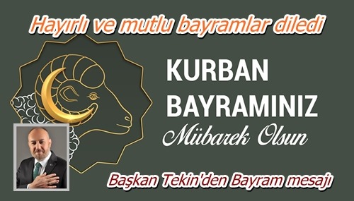 BaÅŸkan Tekin, birlik ve beraberlik mesajlarına yer verdiÄŸi açıklamasında bayramlarda kardeÅŸliÄŸin ve millet olma ÅŸuurunun pekiÅŸtiÄŸine deÄŸindi ve mesajında bayramın birlik ve beraberlik içinde geçmesini diledi. Kurban Bayramı’nda paylaÅŸma ve yardımlaÅŸmanın en güzel örneklerinin yaÅŸandığını belirten BaÅŸkan Tekin, “Dini ve milli duygularımızın zirveye çıktığı bu günlerde sıkıntı ve kaygılarımızdan uzaklaÅŸarak, sevginin, rahmetin, bolluk ve bereketin hâkim olduÄŸu bir havayı hep birlikte teneffüs etmeyi umut ediyoruz.