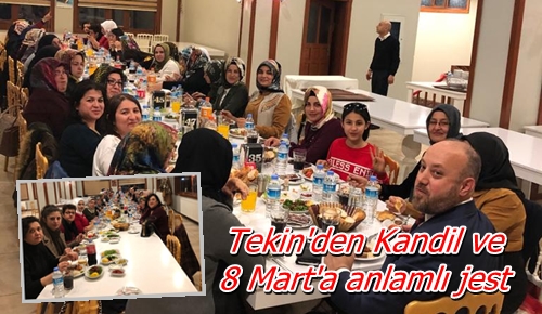 AK Parti Bahşılı Belediye BaÅŸkan Adayı Recep Zafer Tekin Regaip Kandili ve 8 Mart Dünya Kadınlar Günü dolayısıyla anlamlı bir jestte bulundu. BaÅŸkan Adayı Tekin, bu iki özel gün dolayısıyla AK Parti Bahşılı İlçesi Kadın Kolları BaÅŸkanlığı ekibi ile yemekli toplantıda bir araya geldi. Kadınların her zaman baÅŸ tacı olduÄŸuna dikkat çeken Tekin, onlarla Kandil ve Kadınlar Günü dolayısıyla sohbet etti, seçimle ilgili de istiÅŸarelerde bulundu.