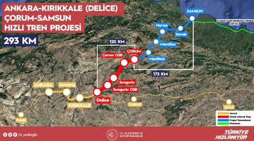 Ankara-Kırıkkale-Çorum-Samsun Hızlı Demiryolu Projesi'nin, Samsun-Sarp Hızlı Demiryolu Projesi ile entegre olacağını dile getiren Bakan Uraloğlu, hattın Samsun-Çorum-Delice-Kırşehir-Aksaray-Ulukışla-Yenice üzerinden Mersin Limanı'na kadar uzanacak olan kuzey-güney hızlı demiryolu koridorunun önemli bir halkasını teşkil ettiğini belirtti. Bakan Uraloğlu, "Karadeniz ile Akdeniz arasında yüksek kapasiteli, hızlı ve çevreci bir taşımacılık ağı oluşturuyoruz. Bu ağ kapsamında Artvin'den itibaren, Rize, Trabzon, Giresun, Ordu, Samsun, Amasya ve Çorum illerimiz Ankara merkezli ulusal hızlı demiryolu ağımıza dahil olacak. Hattın devamında Kırşehir, Aksaray, Niğde ve Mersin de bu ağa dahil olacak ve böylece yaklaşık 8 milyon kişi daha doğrudan hızlı tren konforuna kavuşacak" ifadelerini kullandı.