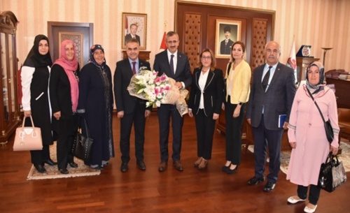 Ticaret İl Müdürü Seyfettin Çetiner, üretici ve girişimci kadınlar tarafından kurulan 'Irmak Hanımeller Kadın Kooperatifi' başkan ve yönetim kurulu üyeleri ile birlikte Vali Yunus Sezer'i makamında ziyaret etti.