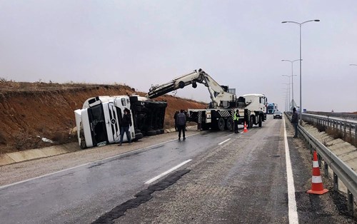 Konya'nın Kulu ilçesinde meydana gelen trafik kazasında 1 kiÅŸi yaralandı. Tuncer Akalın (33) yönetimindeki 27 AAE 239 plakalı tavuk yemi taşıyan tır, Kulu-Kırıkkale kara yolunun 14. kilometresinde devrildi. Kazada yaralanan sürücü Akalın, ambulansla Kulu Devlet Hastanesi'ne kaldırıldı. Yaralının saÄŸlık durumunun iyi olduÄŸu öÄŸrenildi.